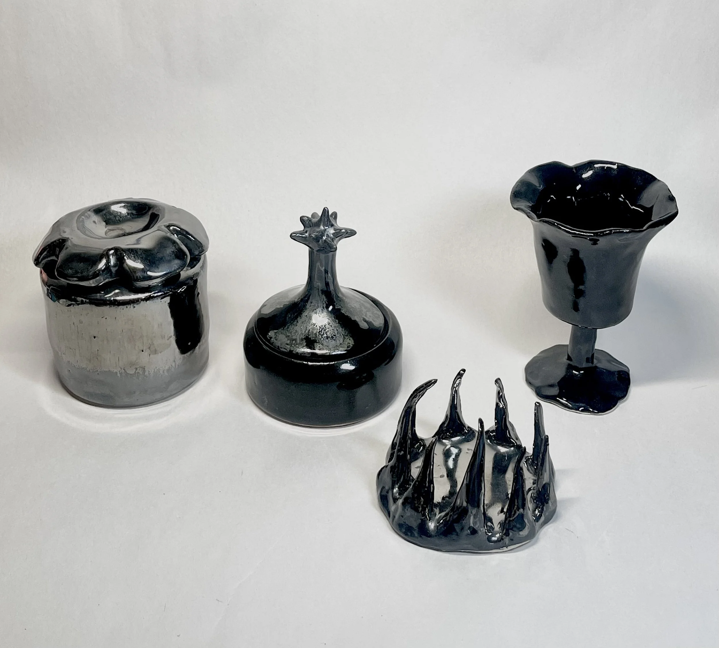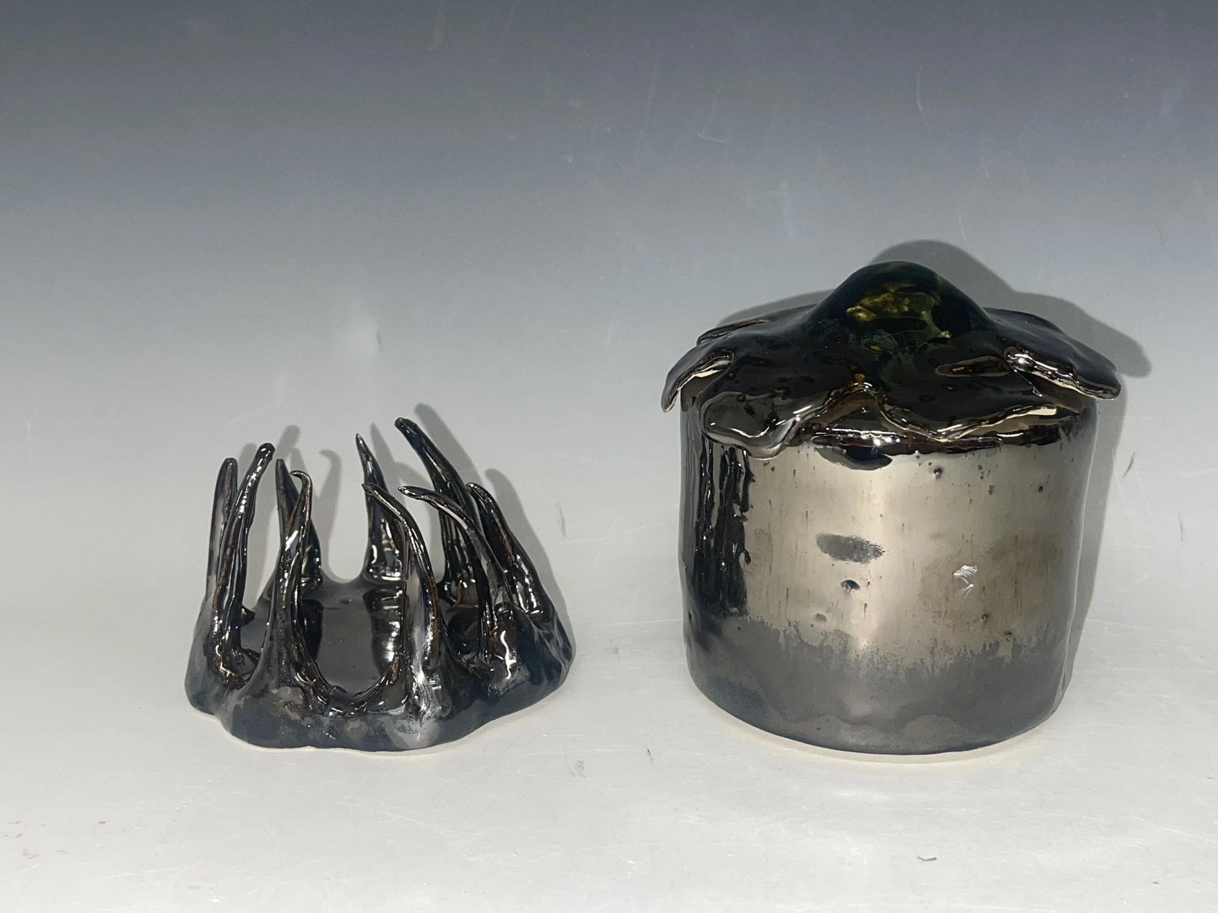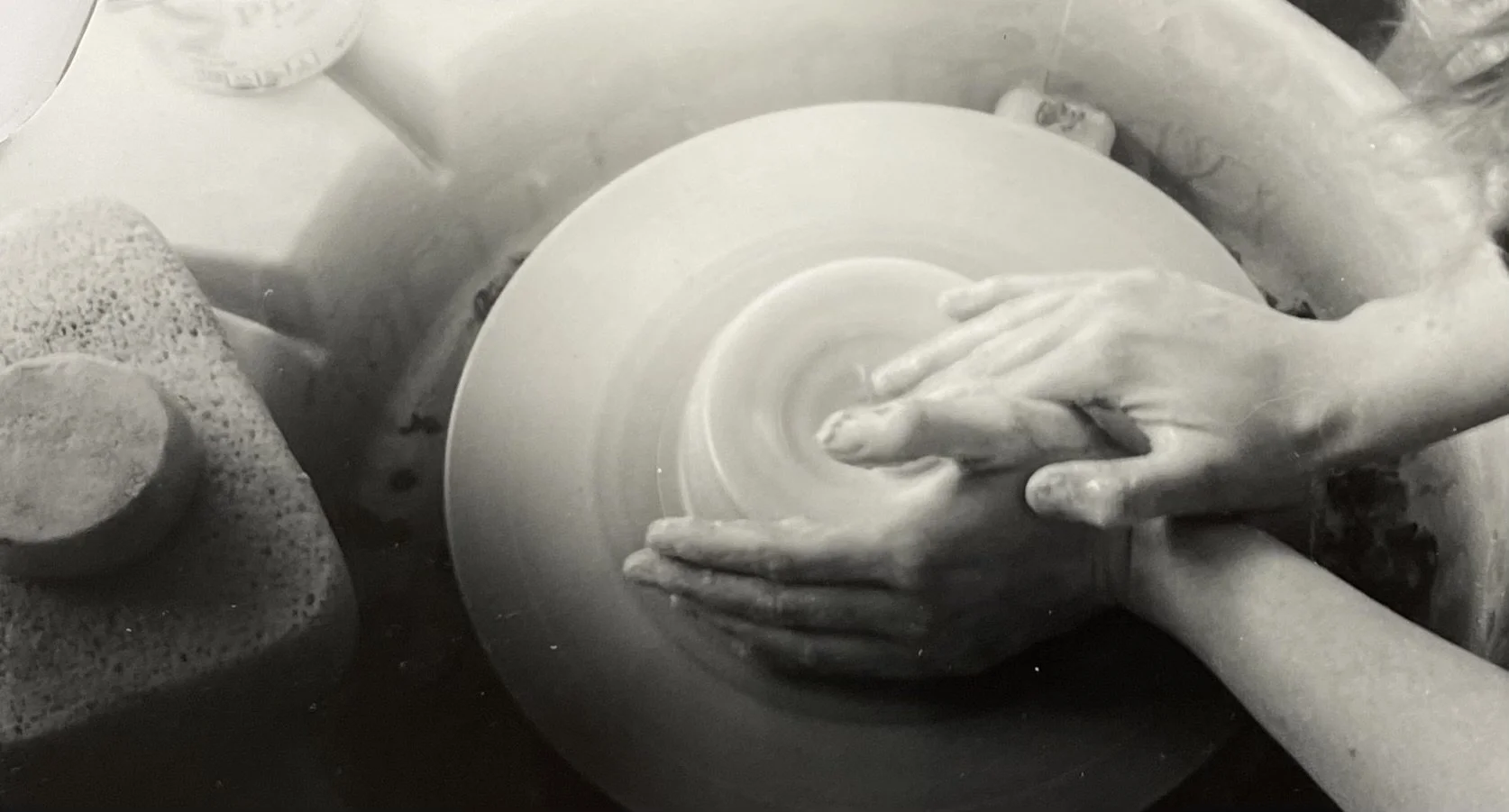 35mm shot by Margo of me throwing cone ten glaze fired mancala set for a board game lesson ceramic jewelry licorice + metallic palladium glaze